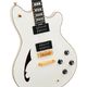 Evh SA-126 Special PLT PRL MET; Semi-hollow electric guitar; Body: Chambered mahogany with basswood centre block; Neck: Mahogany; Fingerboard: Ebony; Neck joint: Bolt-on; Neck shape: EVH Modified ‘C’ Backshape; Inlays: Triple Block; 22 jumbo frets; Nut: Graph Tech TUSQ; Nut width: 1.75‘ (44.45 mm); Scale length: 24.75’ (629 mm); Fingerboard radius: 12‘ to 16’ compound radius (304.8 mm to 406.4 mm); Pickups: EVH SA-126 Humbucking (bridge), EVH SA-126 Humbucking (neck); Controls: Volume 1. (neck pickup), Tone 1. (neck pickup), Volume 2. (bridge pickup), Tone 2. (bridge pickup); Switch: 3-way; Bridge: EVH Harmonica; Tuners: EVH Keystone Tuners; Hardware finish: Gold; Colour: Platinum Pearl Metallic; Original strings: Nickel Plated Steel (.009-.046 gauges); Includes EVH SA-126 Ivory case