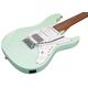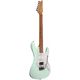 Ibanez AZ22S2-MGR; ST-Style electric guitar; Body: Alder; Neck: Roasted maple; Fretboard: Jatoba; Neck attachment: Bolt-on; Neck profile: AZ; Inlays: White Dot; 22 jumbo frets; Nut: Plastic; Nut width: 42 mm (1.65"); Scale length: 648 mm (25.51"); Fretboard radius: 305 mm (12.01"); Neck thickness at the 1st fret: 21 mm; Neck thickness at the 12th fret: 23 mm; Pickups: Ibanez Classic Custom (H) (bridge), Ibanez Classic Custom (S) (middle), Ibanez Classic Custom (S) (neck); Controls: Volume, Tone, dyna-MIX9 Alter Switch; Switch: 5-way; Tremolo: T106; Hardware finish: Chrome; Tuners: Locking; Color: Mint Green; Finish: High gloss