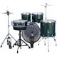 Ludwig Accent Fuse 5pc Jade Dust, color: Jade Dust, foiled, 5-ply hardwood shell, 20"x14" bass drum, 10"x8" Tom Tom, 12"x9" Tom Tom, 14"x14" floor tom, 14"x5" snare drum, inklusive straight cymbal stand, hi-hat stand, snare stand, drum throne, bass drum pedal, shell hardware: chrome, double-ply batter heads, power collar bass drum heads, cymbalset consisting of: 14" hi-hat and 16" crash/ride inclusive, original Ludwig keystone badge