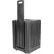 SKB R8SW Shallow Roto Rolling Rack - Double door rack with trolley function; vertical height units: 8U; with “one-touch” pull handle; recessed butterfly locks; two side handles; rack rails at front and rear; incl. rack screw set; water-repellent seal; mounted wheels on the bottom; stackable design; non-slip rubber feet; Housing material: hard plastic; installation depth: 272 mm; external dimensions (WxDxH): 431 x 455 x 626 mm; weight: 14.1 kg; color: black