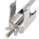 The spring when compressed fully leaves a good sized gap between the two "heads" of the clamp. Although this is no issue for the tour stage blocks, this could lead to issues if attempting to use with another similar brand stage.